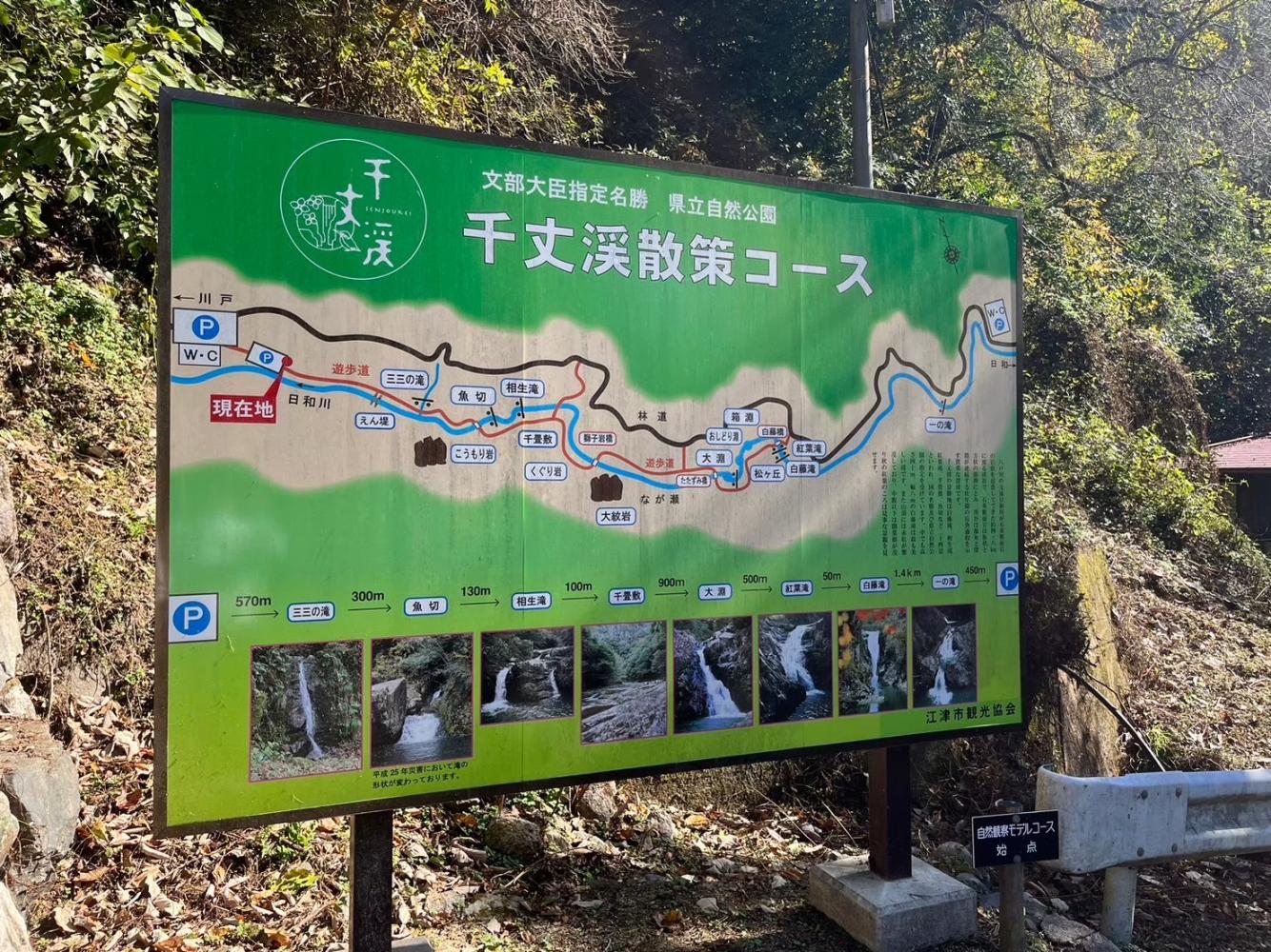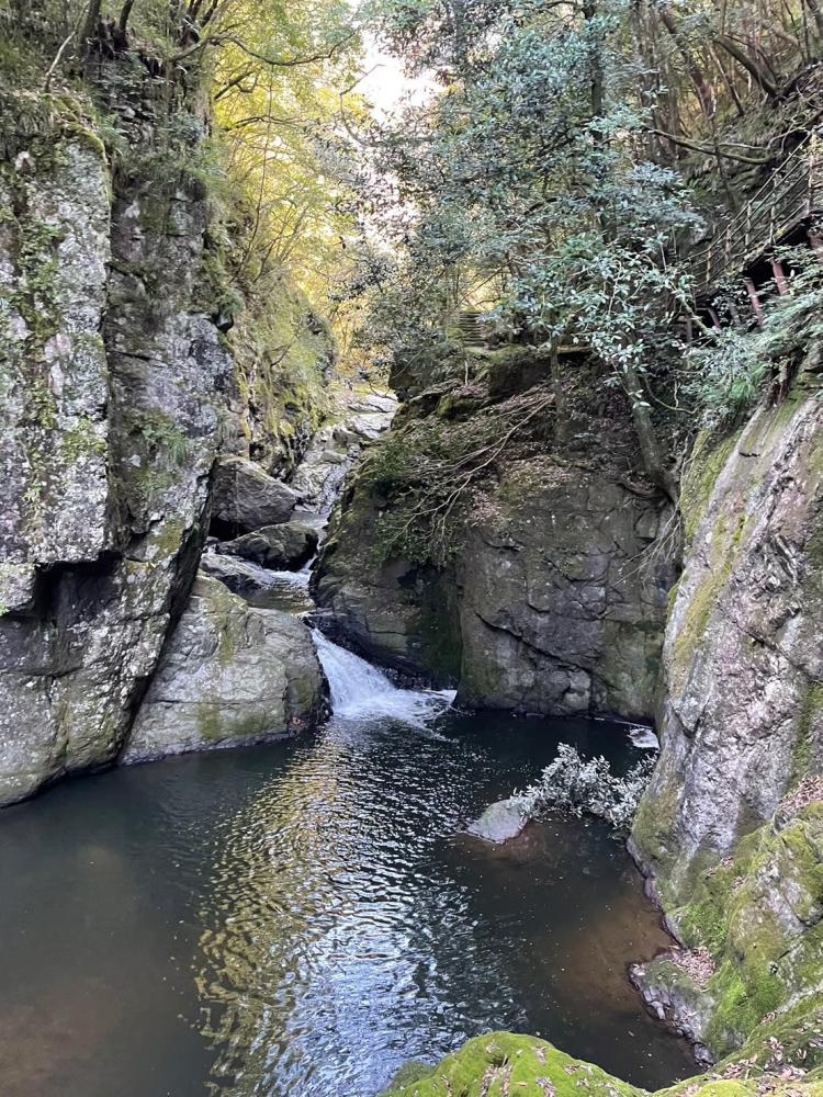 県立自然公園に指定された渓谷。道中には滝や深い渕、千畳敷と呼ばれる絶景など、見どころも多数。昆虫、鳥などの生き物も多く生息し、その形跡に出会えることも。
